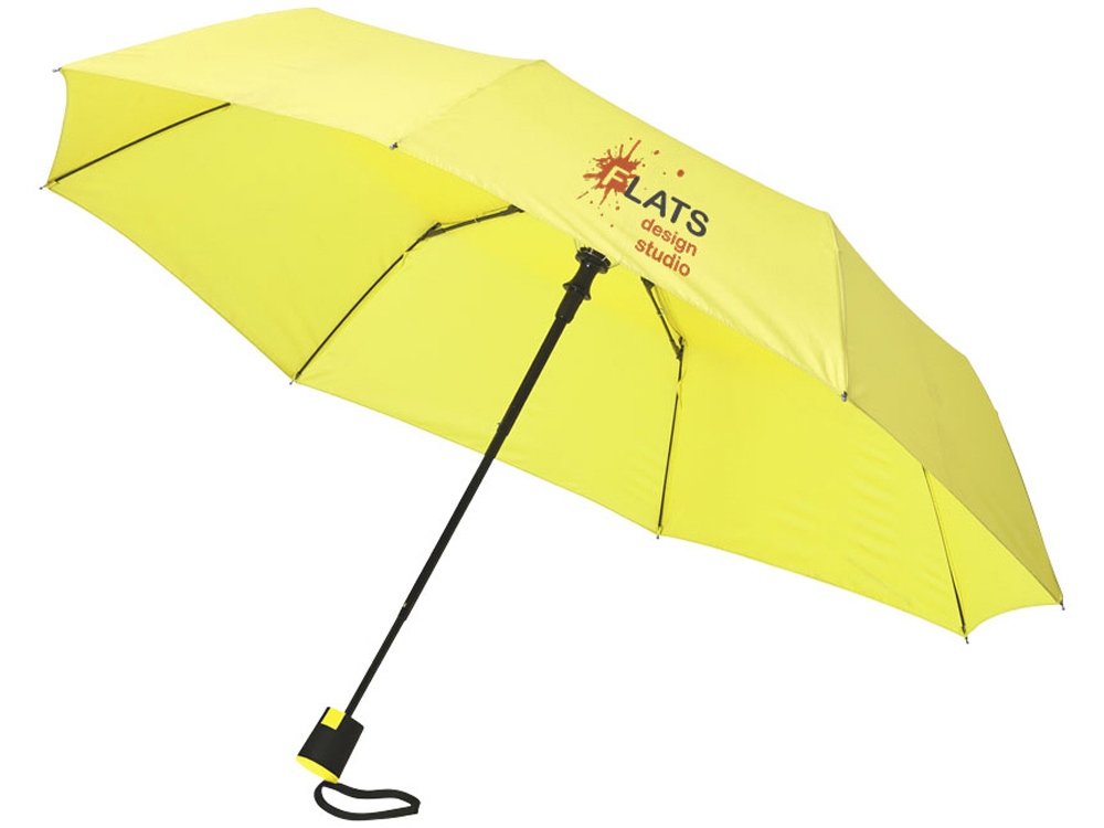 Зонт Wali трехсекционный 21 с автоматическим открытием. Зонт 21 с металлическим стержнем, спицами из стекловолокна и пластиковой ручкой с прорезиненным покрытием. В комплекте чехол. Полиэстер эпонж.