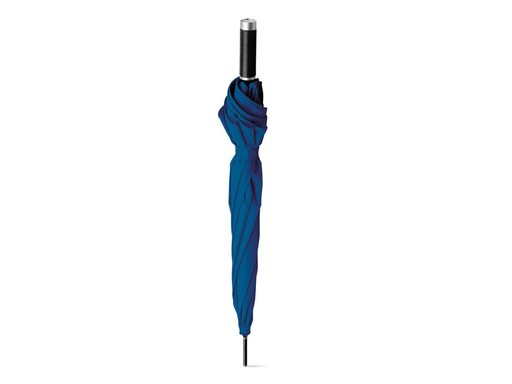 Полуавтоматический зонт-трость для гольфа из эпонжа 190Т со стеклопластиковыми спицами, с ручкой из искусственной кожи и зоной для объёмной 3D печати. Поставляется в чехле. Вид нанесения, рекомендуемый поставщиком: трансфер, текстильный принтер, вышивка