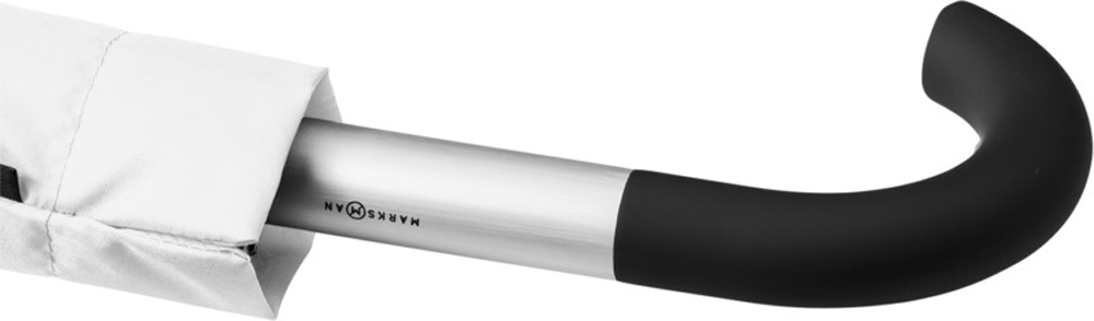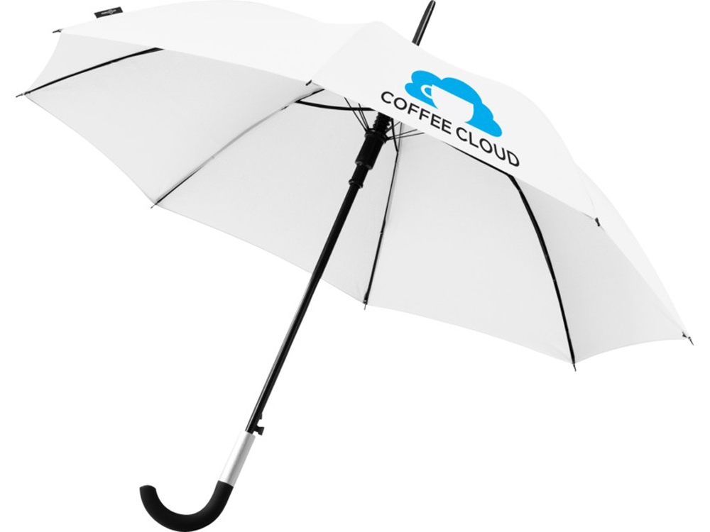 Эксклюзивный автоматический зонт. Металлическая трость и спицы. Специальная ручка, позволяющая вешать зонт на стол. Прорезиненная изогнутая ручка с алюминиевыми деталями. Чехол под цвет зонта. Полиэстер Эпонж.