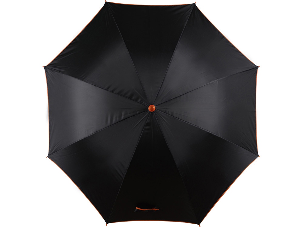 Стильный полуавтоматический зонт-трость защитит во время дождя, а в сложенном виде дополнит деловой образ. На внешнюю сторону купола зонта можно нанести любое изображение.