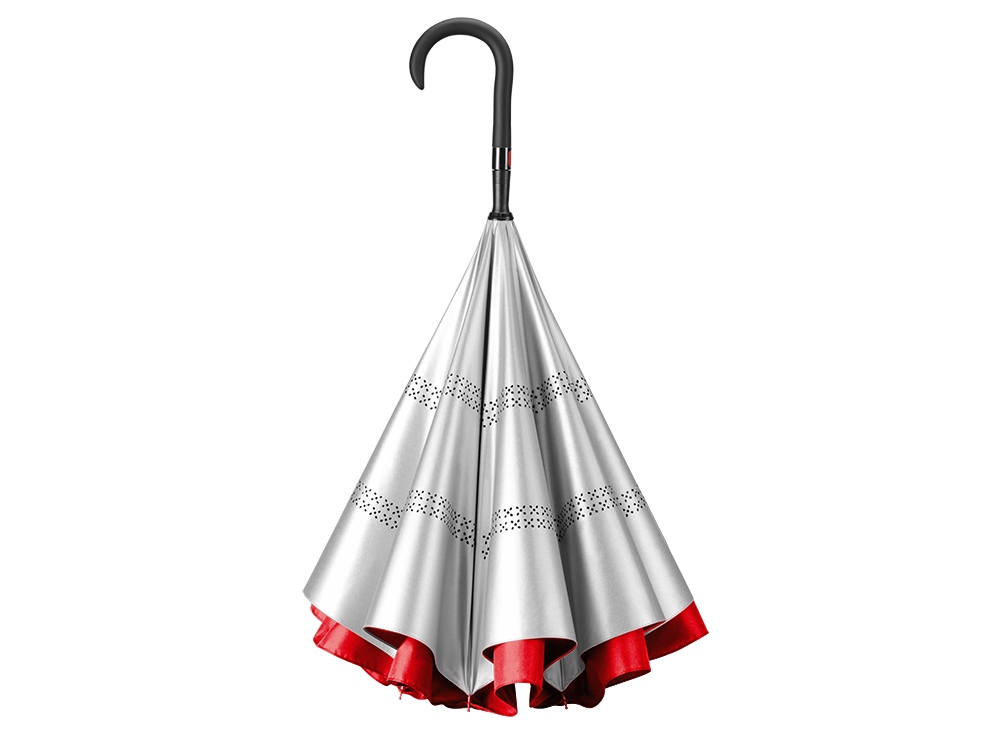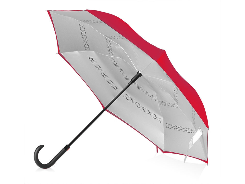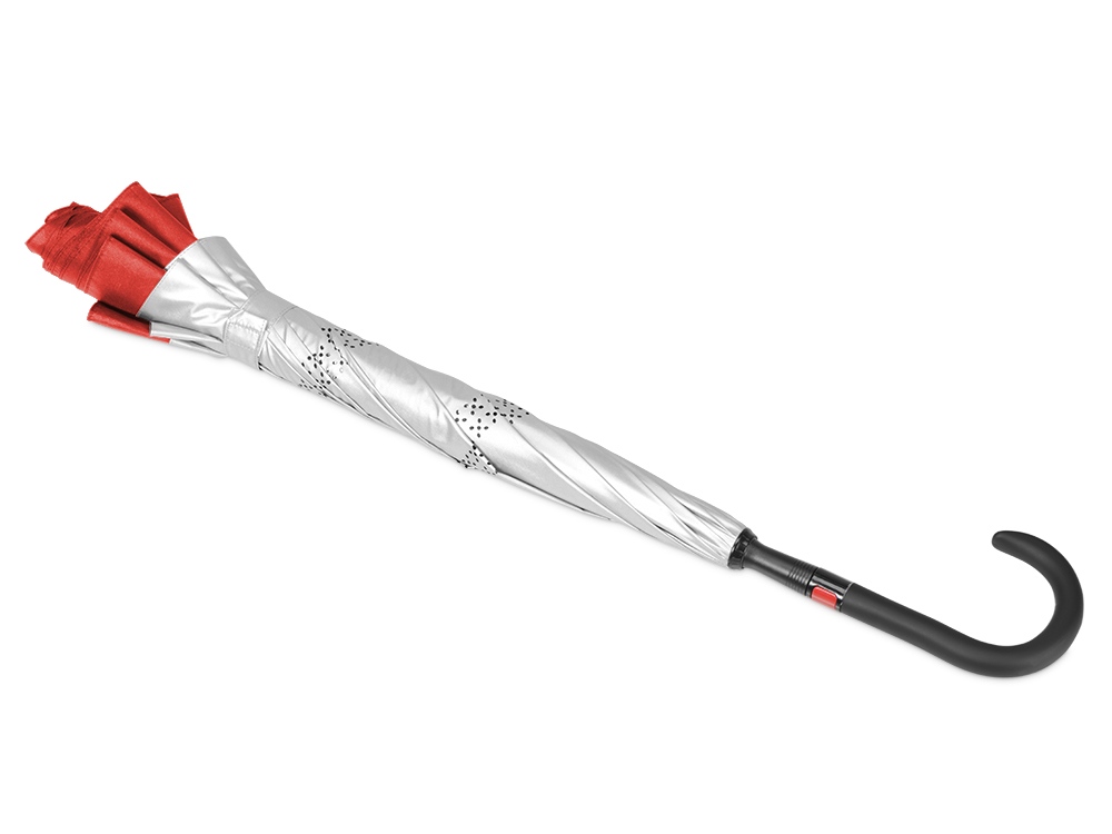 Зонт-трость наоборот Inversa, полуавтомат, красный/серебристый