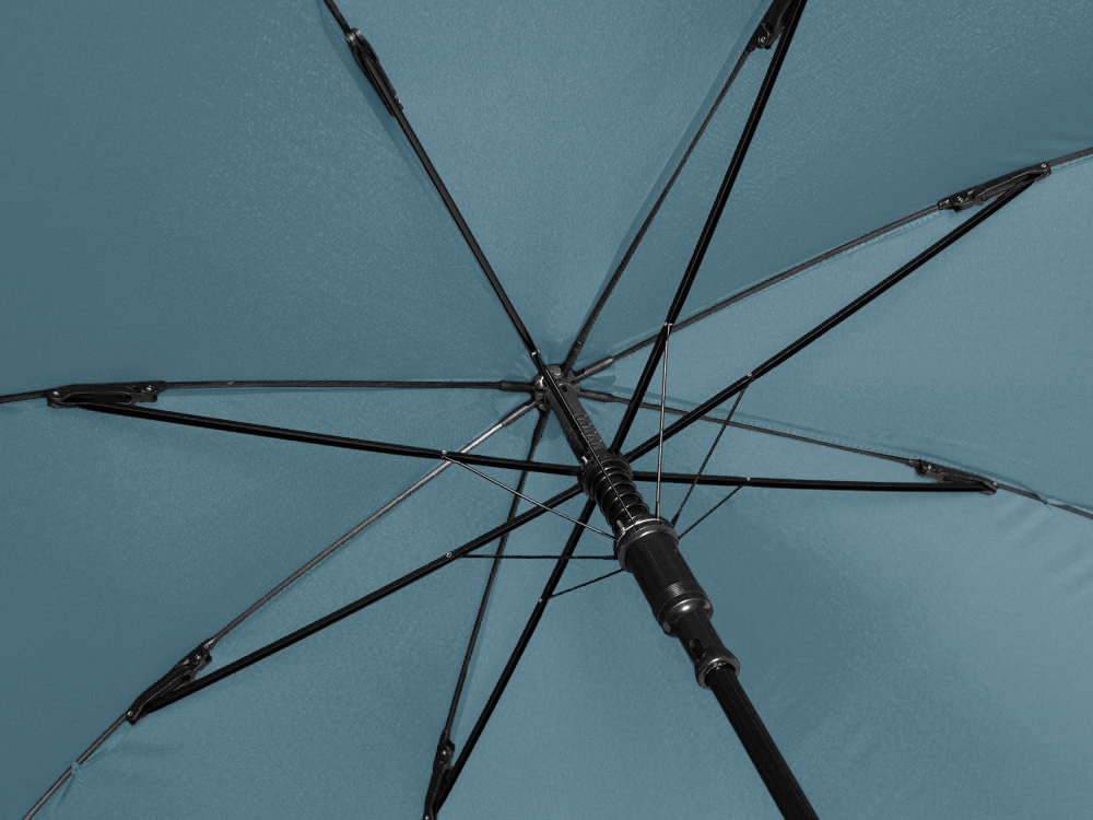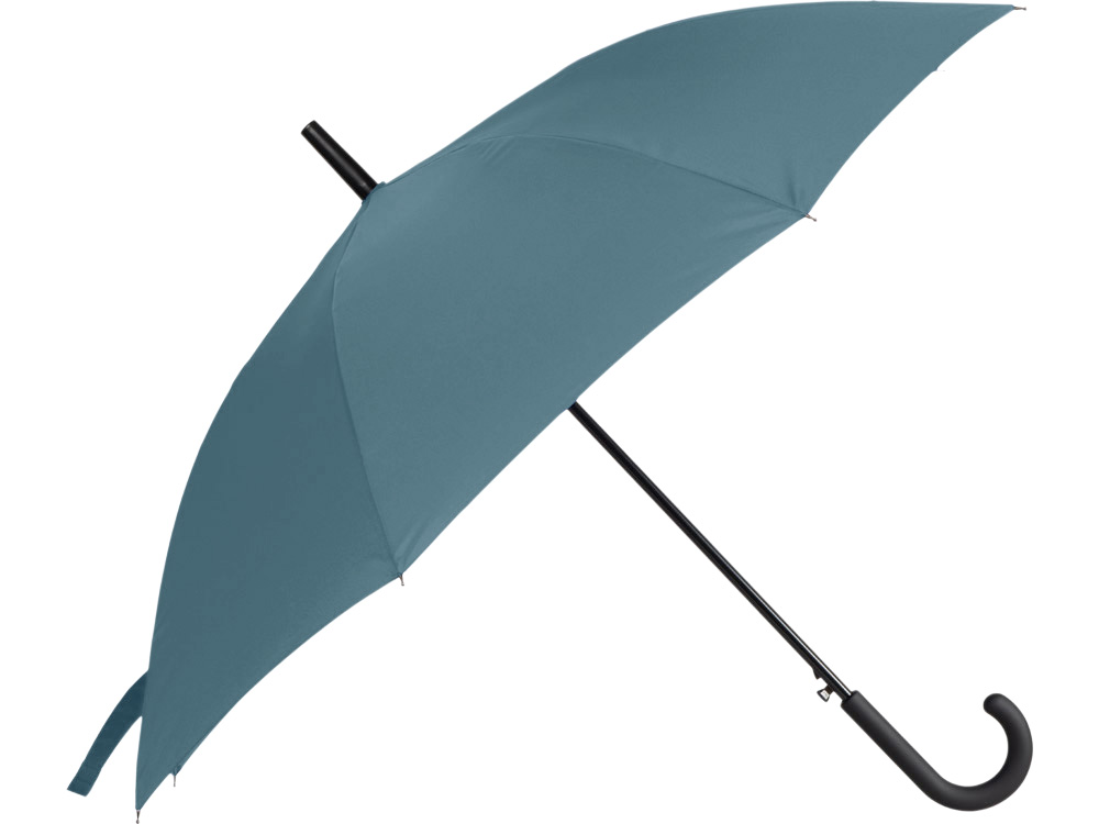 Купол зонта-трости выполнен из переработанного пластика. На ручке зонта расположена кнопка автоматического открытия. Гибкие спицы из стекловолокна делают зонт стойким к порывам ветра. Удобная ручка софт тач. Фиксирующая купол застежка на липучке шириной 3 см - дополнительная опция для нанесения вашего логотипа.