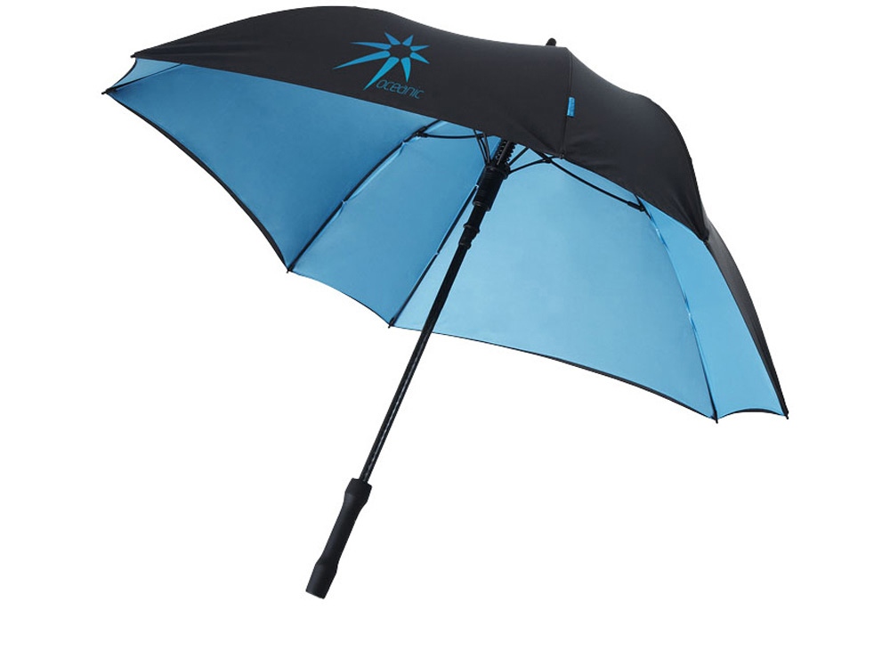Уникальный эксклюзивный квадратный зонт. Автоматически открывается. Внутренняя поверхность купола контрастного цвета, черный чехол. Стекловолоконная трость и спицы, прорезиненная ручка. Трафаретная печать (1 цвет (цветные изделия)) на данный товар осуществляется бесплатно. Оплачивается только настройка оборудования в размере 8200 рублей на весь тираж.